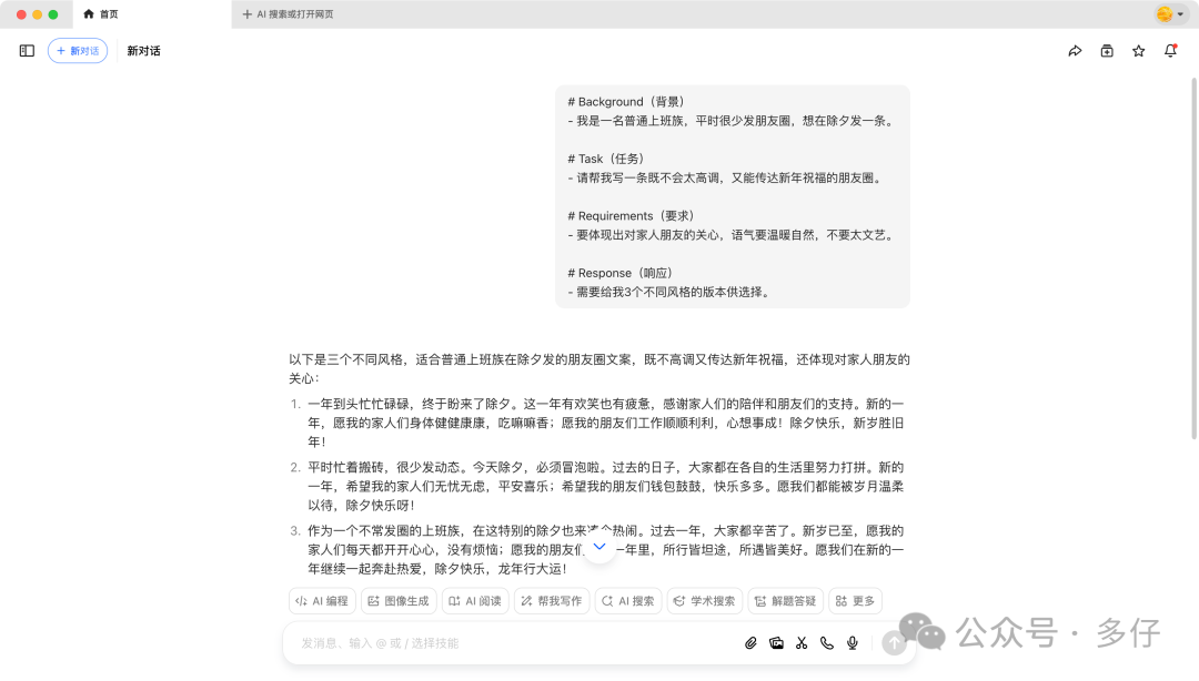 - Insight(背景):提供给 AI 一些相关的背景信息,让 AI 了解任务所处的情境、相关的过往情况等,以便更准确地完成任务。