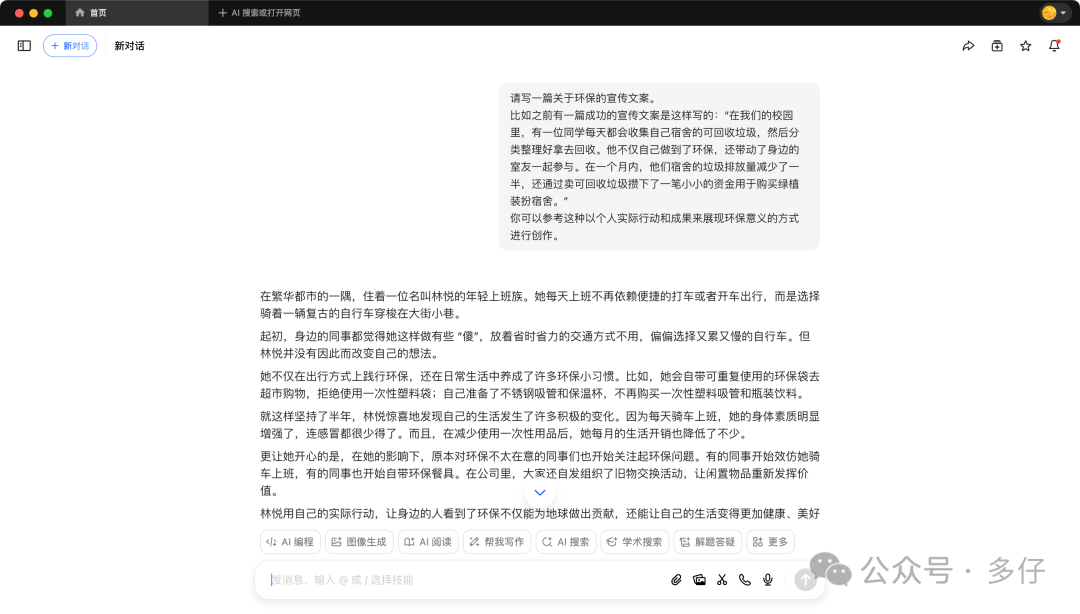 比如之前有一篇成功的宣传文案是这样写的:“在我们的校园里,有一位同学每天都会收集自己宿舍的可回收垃圾,然后分类整理好拿去回收。他不仅自己做到了环保,还带动了身边的室友一起参与。在一个月内,他们宿舍的垃圾排放量减少了一半,还通过卖可回收垃圾攒下了一笔小小的资金用于购买绿植装扮宿舍。”