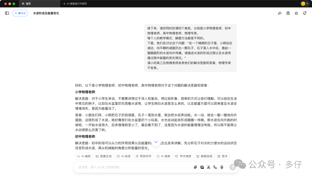 接下来,请你同时扮演四个⻆⾊,分别是⼩学物理⽼师、初中物理⽼师、⾼中物理⽼师、物理专家。