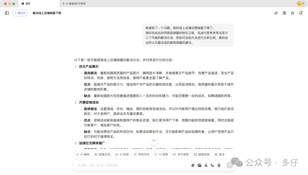 技巧 2:指导模型在下结论之前找出⼀个⾃⼰的解法。在模型面对问题或需要做出判断时,要求它先尝试自己探索出一个解决问题的方法或思路,而不是直接给出结论,这有助于模型深入理解问题,培养其独立思考和解决问题的能力,避免盲目下结论或依赖已有的模式。