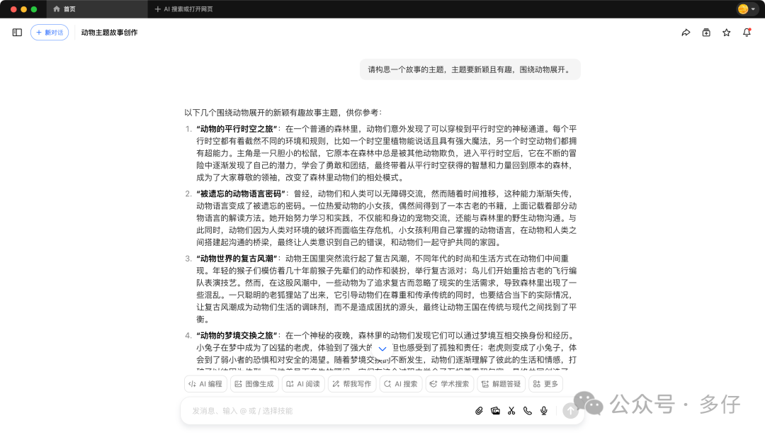请构思一个故事的主题,主题要新颖且有趣,围绕动物展开。